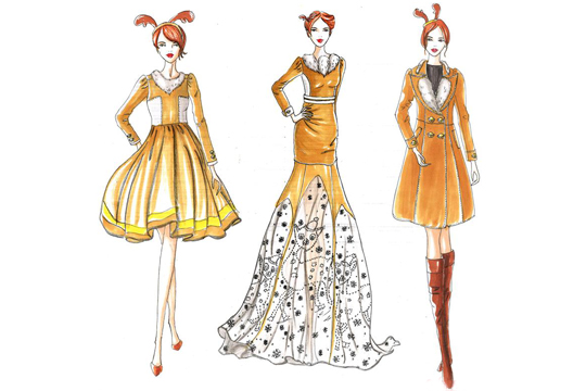服装设计过程“即根据设计对象的要求进行构思,并绘制出效果图、平面图,再根据图纸进行制作,达到完成设计的全过程”。