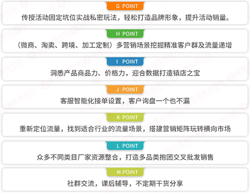 学习目的——针对商家0动销&客户量&销售额的瓶颈突破,学会如何打造基础销量;分析客户购物意向及身份维护管理,增加店铺返单量;轻松解决客户的售前、售后问题。