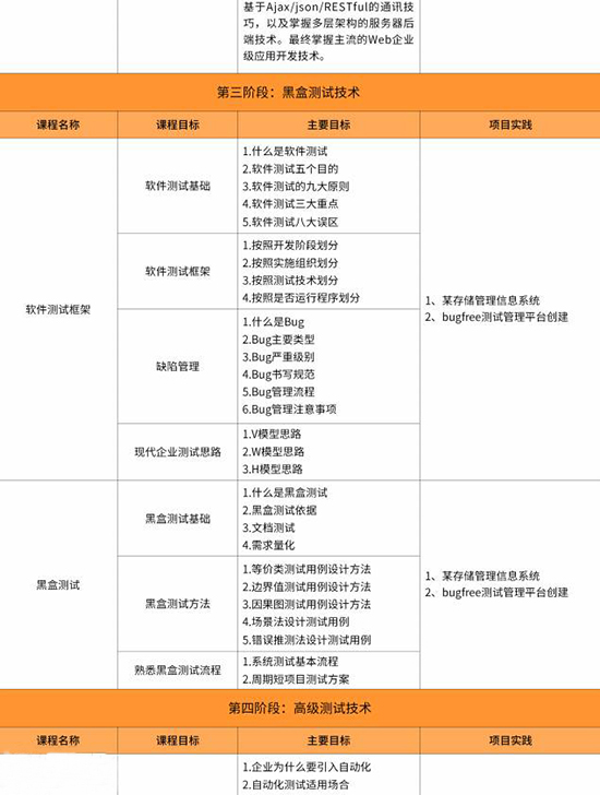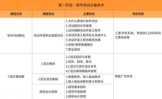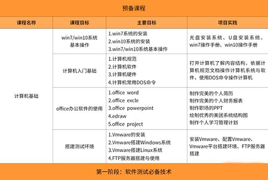 本课程主要学习计算机基础、软件测试概论、C语言基础、软件工程、数据库、Java开发语言核心、黑盒测试、自动化测试等专业内容,采用020双模式教学,课堂效率不断优化,在有限的时间内将更广更深的知识传授给学员。