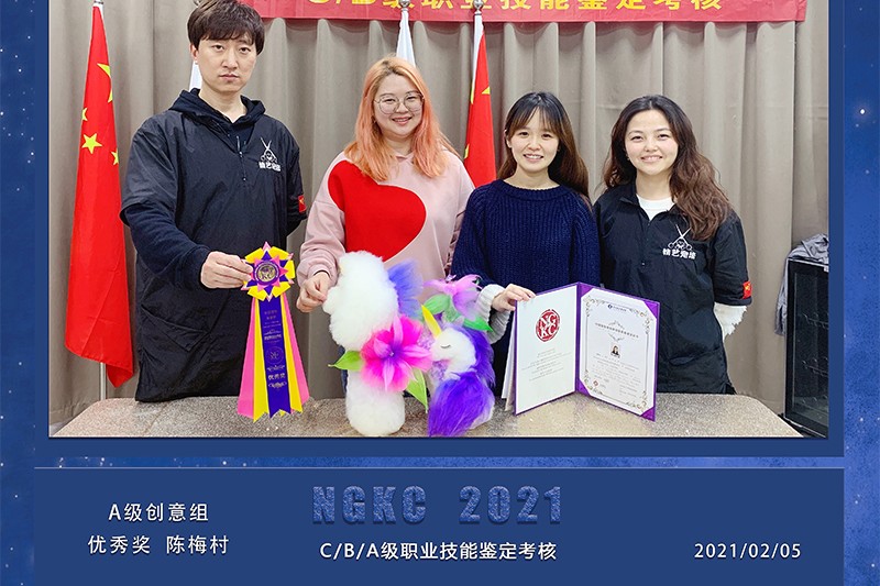8NGKC第282届中国宠物美容师职业资格鉴定大赛、B级专业剪毛组优秀奖(获奖选手)、8NGKC第288届中国宠物美容师职业资格鉴定大赛、A级专业剪毛组第三名(唯获奖选手)