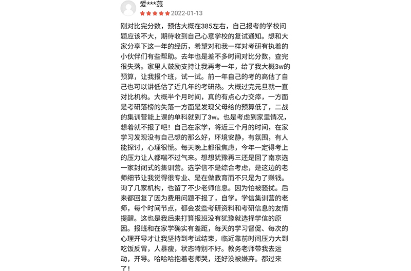 学信考研秉承“金奖银奖不如学生的夸奖,金杯银杯不如学生的口碑”这一办学理念,经过10年的发展已成为一家专注全国研究生入学考试辅导的大型培训学校。