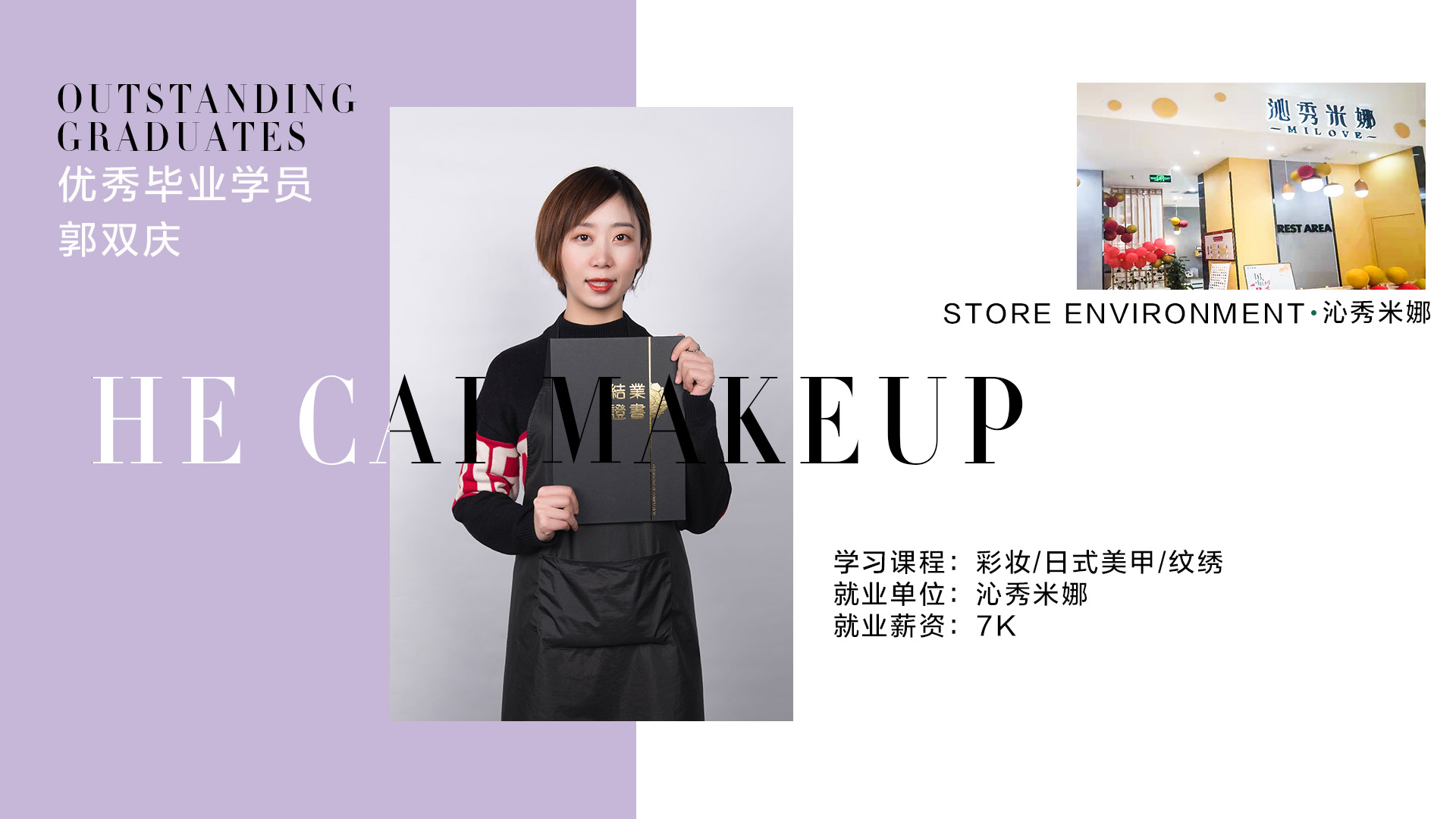 成都赫彩形象艺术学院高级半永久讲师、国家高级半永久纹绣讲师、国家高级美甲师、国家高级美容师、国际高级纹绣师、环球纹绣艺术交流特约委员。