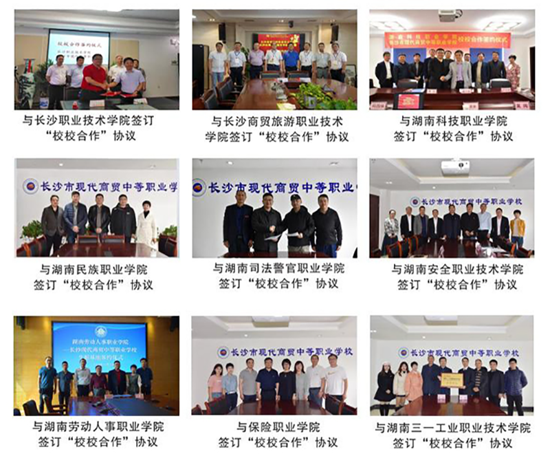 对口的大专院校有:长沙民政职业技术学院、长沙职业技术学院、长沙商贸旅游职业技术学院、湖南科技职业学院、湖南民族职业学院、湖南司法警官职业学院,湖南外贸职业学院、湖南信息职业技术学院、长沙卫生职业学院、湖南食品药品职业学院、湖南安全技术职业学院等。2023年春季单招,我校学生均被合作院校录取!