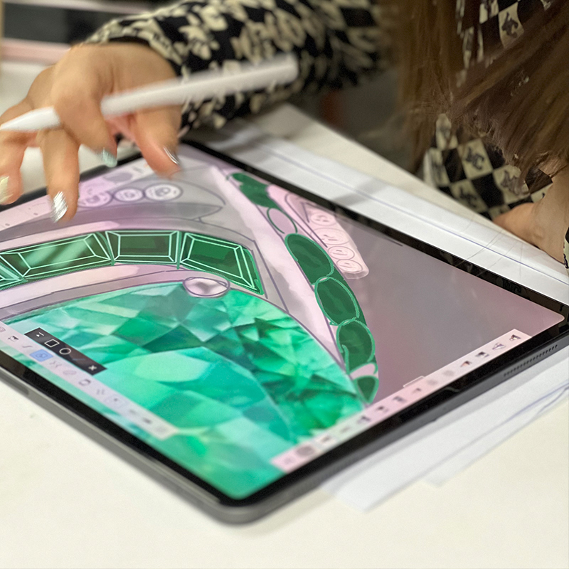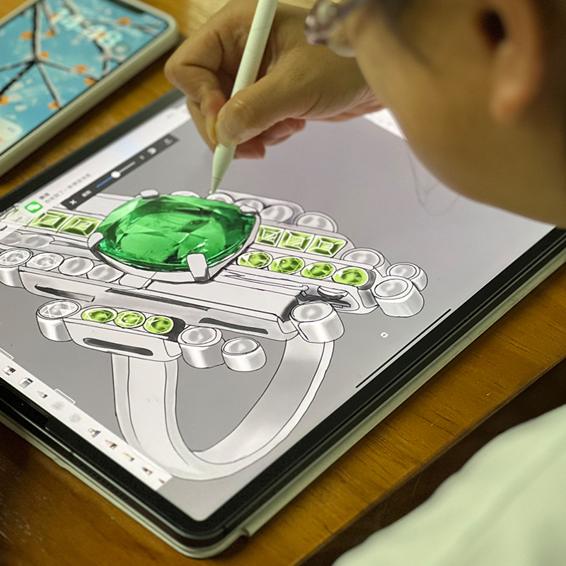 珠宝设计师班分为手绘设计师班和iPad设计师班两门,课程目标都是零基础到独立设计,结业可创业和就业。区别是学习工具不同,手绘设计师班侧重绘图基础理论,同时手绘也是高级珠宝的艺术附加值;iPad设计师班侧重工作效率,结合我们多年的珠宝出图经验传授快速设计的方法,对珠宝人做设计来说立竿见影。我们的课程优势,每门课对比同行教学内容更多更全面,行业内不少知名珠宝博主也选择我们学习!