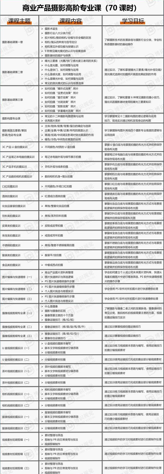博识教育致力于服务深圳百万上班族,帮助个人在一定时间内学会或提升相关培训技能科目,开设课程主要包括:摄影摄像,办公软件速成,商业产品与活动拍摄,企业内训等;一对一随到随学。