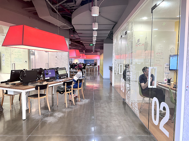 您可以在iLab免费使用电脑、平板电脑、耳麦等电子设备自习,也可以在开放区域找到志同道合的学员一起交流、共同进步。