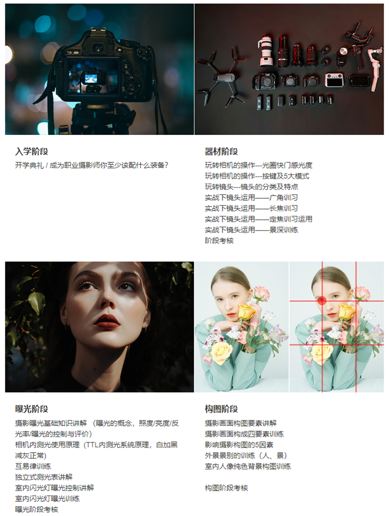 新视觉摄影培训品牌资源共享,国际化一线人像摄影培训,商业项目分组实战,注重创意思维与审美提升,培养综合创造能力,快速晋级专业摄像师。