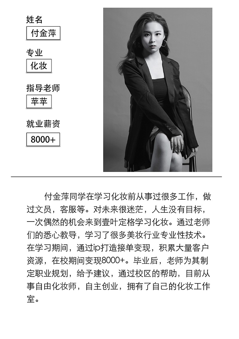 身份:首席化妆讲师 壹叶定格创始人