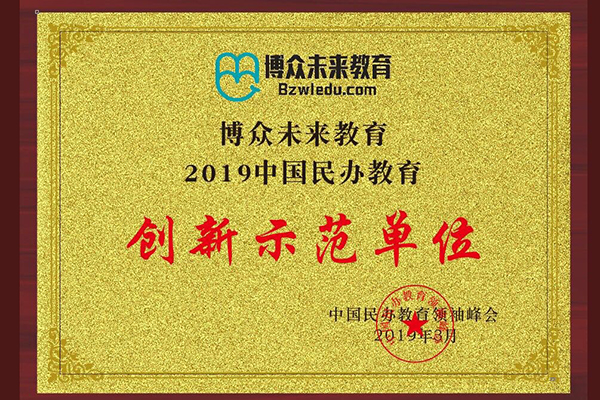 2019年5月,在第二届中国民办教育峰会中,被提名为“2019年中国民办教育联盟常务理事单位”,同时被被提名为“2019年中国民办教育创新示范单位”。