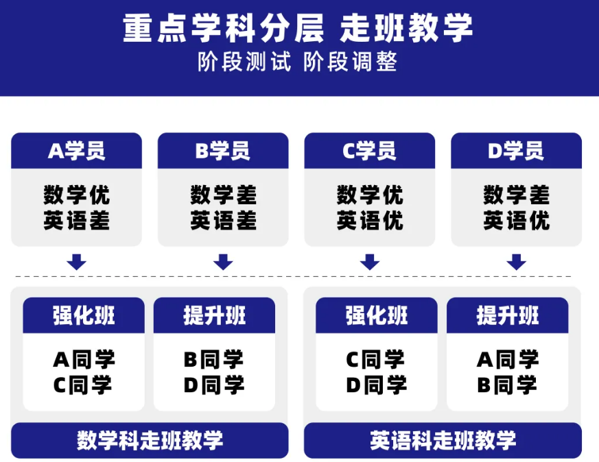 六门科任老师1v1式针对学员学习情况制定教学计划,从常规教学,阶段测试等各部分教学工作保障学员教学服务的开展。