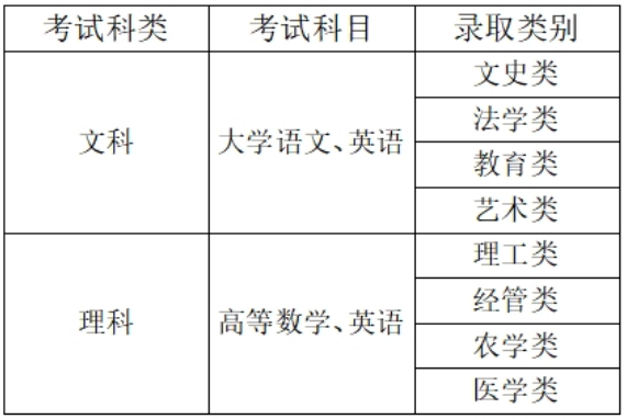 考试科目分文、理科,具体为:
