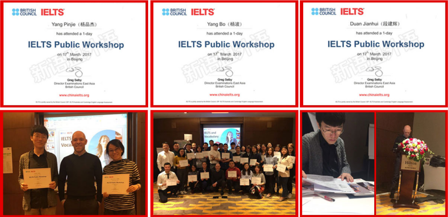 2017年3月7日,我校三名老师在北京参加了雅思官方的主题培训,获得了官方证书。这是官方2017年的为数不多的场次中的一场,我们的者师和雅思监考老师Mark进行了深入沟通,对于雅思官方的题目原则和阅卷标准有了更深的了解,这对于日常的教学工作有巨大的推动作用。