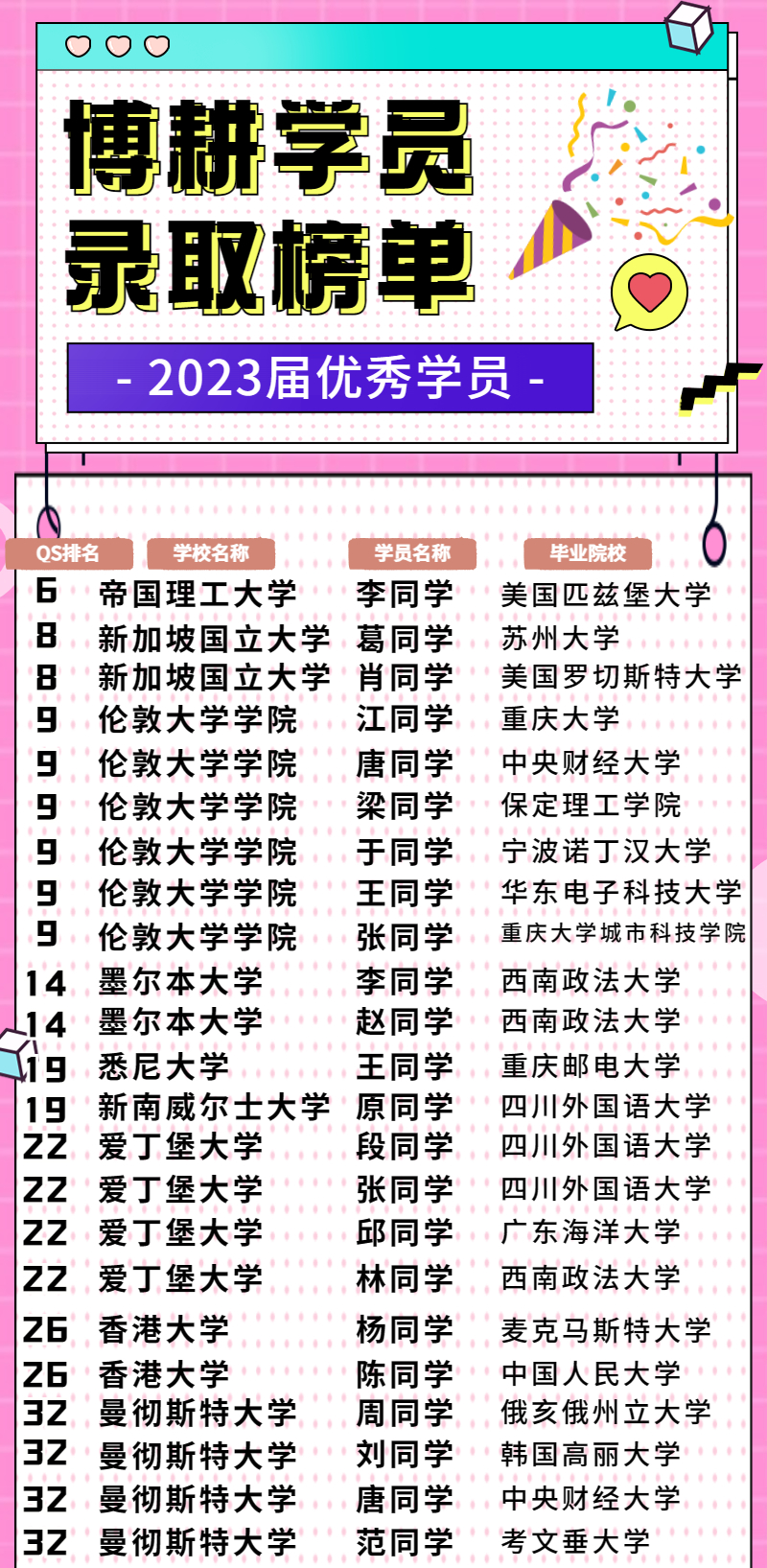 成功帮助500➕学生拿到QS百强名校