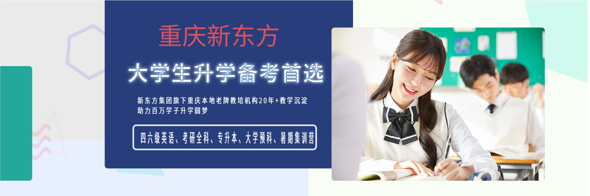 重庆新东方考研中心专注考研辅导与四六级培训,覆盖沙坪坝三峡广场、大学城熙街、南岸五公里、渝北西政等校区。提供线下小班教学(40人/班)及考研集训营(45人),课时量202–696课时,配备重庆中心全职教师团队。依托智能学习系统与专属APP,支持作业批改实时查看、24小时内答疑。提供院校规划、真题深度剖析、全程学管跟盯服务,助力考生高效备考。面向应届本科、专科毕业满两年、本科及以上学历人群。