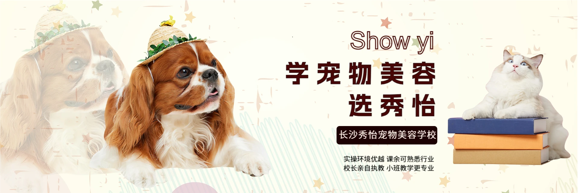 长沙秀怡宠物美容学校坐落于湖南星城长沙,扎根芙蓉区南湖宠物市场,交通便利、设施齐全,已有12年教学历史。学校为美国AKC全球服务中国区NGKC湖南授权指定美容学校,秉承“培养精英美容师,打造精英美容团队,发扬犬业文化,提高养犬品质”办学理念。采用小班教学,由校长陈锦秀亲自执教。陈校长为NGKC教师级美容师、WGA A级美容师,精通贵宾、比熊、雪纳瑞等萌系与赛级造型,在业内经验丰富、教学成果显著。