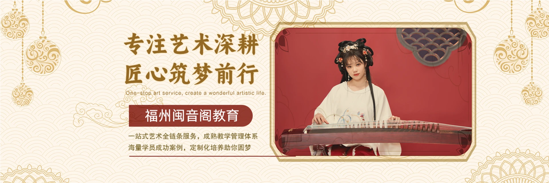 福州闽音阁教育咨询有限公司是福州市集艺术教育、策划、拍摄、制作、包装和推广为一体的综合性集团公司。公司团队由业内资深专业人员组成,已培养众多优秀学生。秉持“专注艺术,用心育人”核心价值,探索新型教育理念,发挥平台优势,为学员提供展示自我的舞台,并配套针对性教学管理制度与考核细则,助力学员走进艺术殿堂,享受艺术人生。