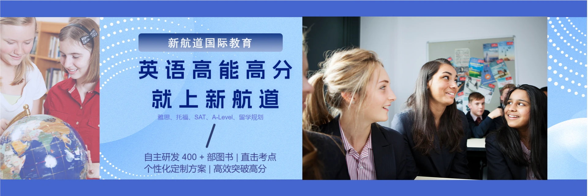 新航道个性化学习中心以专业提分、高效学习为核心优势,专注英语能力提升与考试突破。通过词汇、语法、听说读写全方面训练,针对性找出薄弱环节,迅速提高短板;精讲精练助力基础巩固与瓶颈突破。依托新航道个性化名师团队,包括哈佛、剑桥等名校硕士及英语专业八级导师,融合逻辑思维式口语教学法等成熟经验,助力学员在有限时间内均衡发展、轻松拿下雅思、托福等考试。