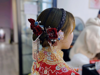 专门开设新娘妆造型课程,讲授清新秀丽的新娘妆技法,搭配白纱造型、婚庆晚宴等不同场合的典雅妆容。