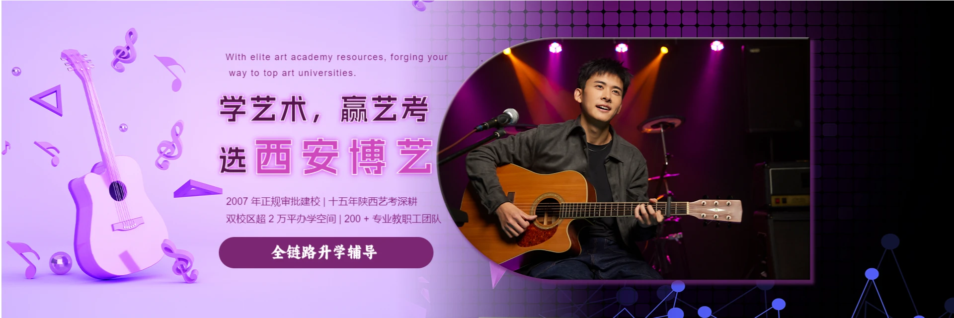 西安博艺艺术教育培训学校始建于2007年,是经教育主管部门批准、民政部门注册的正规民办培训学校。设龙首旗舰校区(3500平方米)和集训校区(20000平方米),教职工80余人。秉持“博学笃志 德艺双馨”理念,坚持“真诚服务,勤奋教学,心系学生,不断进取”,以专业、严谨、系统的教学方式,依托中国传媒大学、北京电影学院等高校师资,培养众多优秀学子。系多所双一流及艺术高校生源合作单位,获评“诚信办学机构”“陕西省十佳艺术培训学校”等荣誉,牵头组织省级模拟联考,服务考生5000余人。