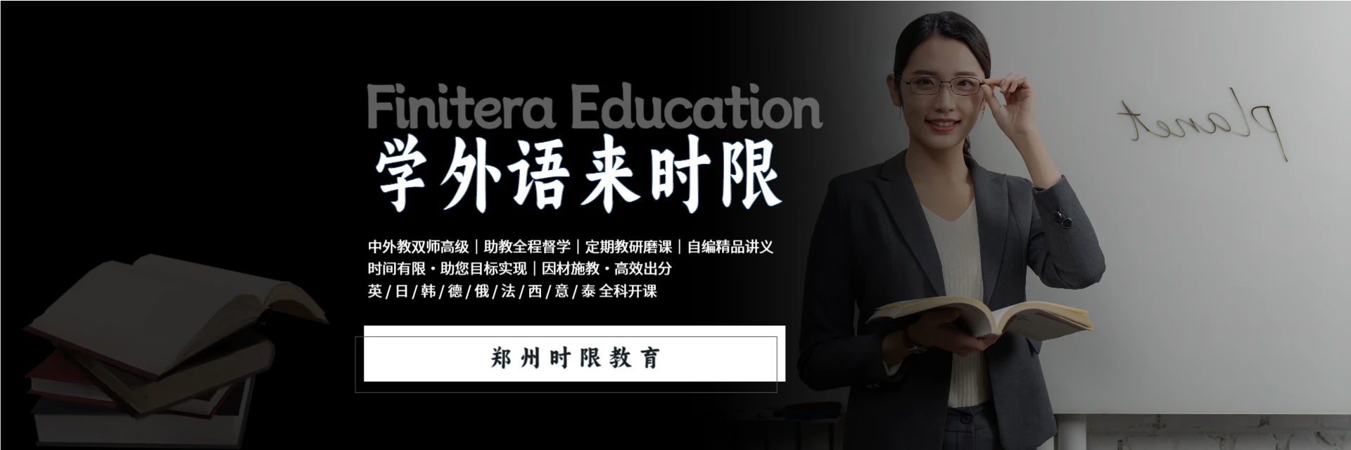 河南时限教育(finitera education)是专注于外语教学研究、留学移民协助及外企就业的专业多语种培训机构。秉持“时间有限,助您目标实现”理念,采用寓教于乐与因材施教相结合的教学方法,提供合理、专业、实用、优质的教学服务。开设英语、日语、韩语、德语、俄语、法语、西班牙语、意大利语、泰语等课程。拥有百余名中外资深教师,中教8年以上经验,外教母语授课且教龄超3年,助教均获高级语言成绩,全程VIP环抱式教学服务。