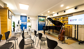 我们的校区环境优雅,设施齐全。三角钢琴琴房、弦乐琴房、排练室、声乐琴房等一应俱全。每一个琴房都精心设计,提供给你舒适的学习环境。我们的水吧和卫生间设施完备,为你提供舒适的服务。